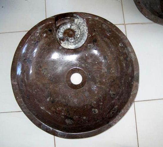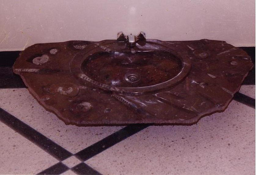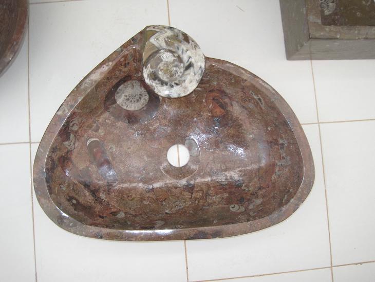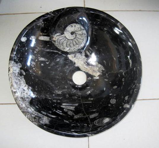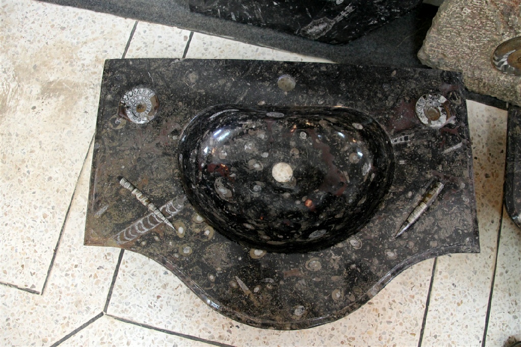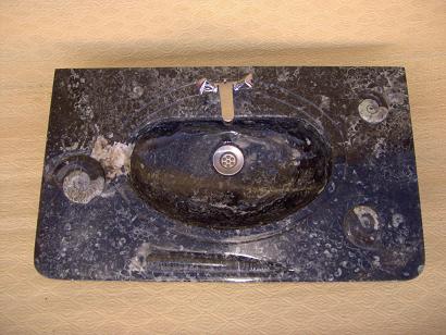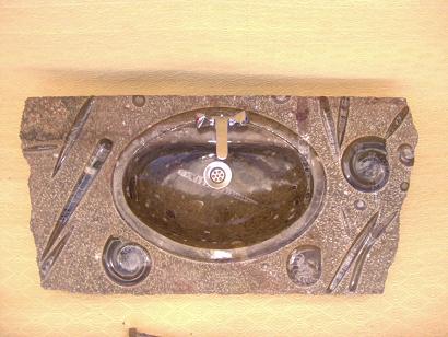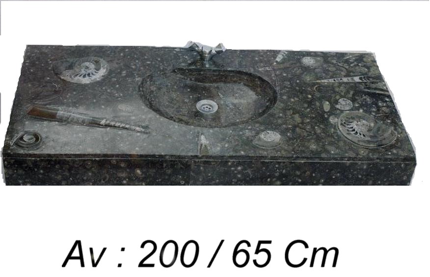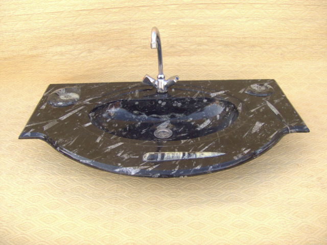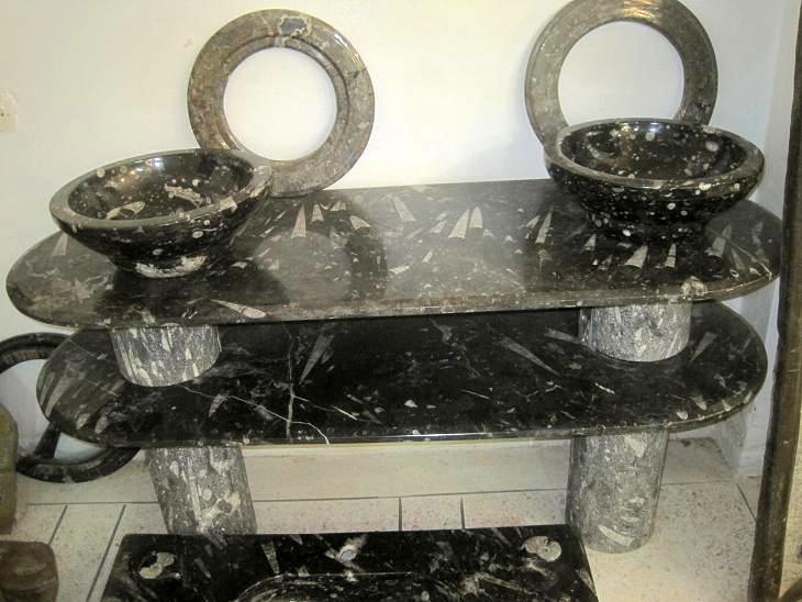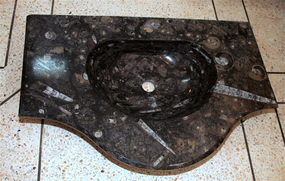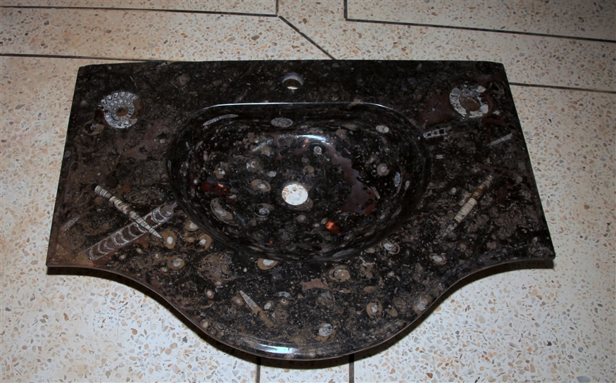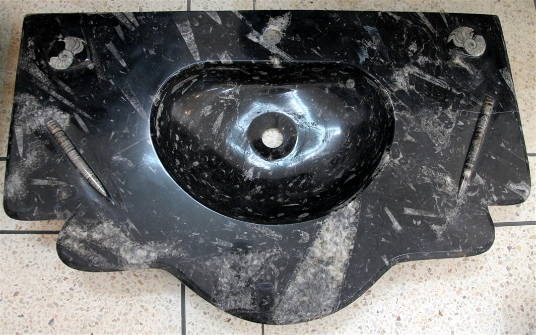 Le travail de la nature peut être vu dans ces merveilleux éviers en pierre. Les ammonites et orthocères fossiles vieux de 345 millions d'années dans chaque évier créent une beauté naturelle époustouflante qui ajoutera à votre salle de bain. Il s'agit d'une trouvaille « unique en son genre » qui rehaussera la décoration de votre maison.