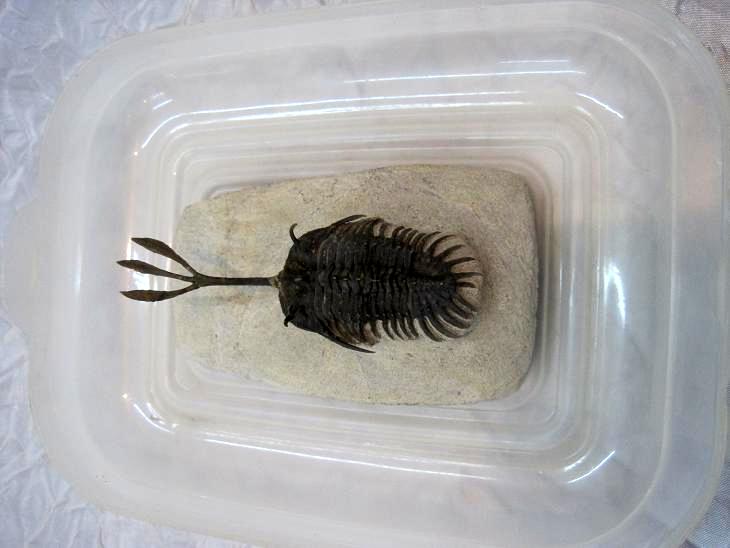 Le nom, trilobite, vient des trois parties distinctes de leur corps segmenté. L'exosquelette dur permettait une bonne conservation en tant que fossile et servait d'armure défensive, mais devait être jeté périodiquement à mesure que l'animal grandissait. Ces nombreux arthropodes à pattes parcouraient les fonds sablonneux des mers et des récifs coralliens à la recherche de nourriture.