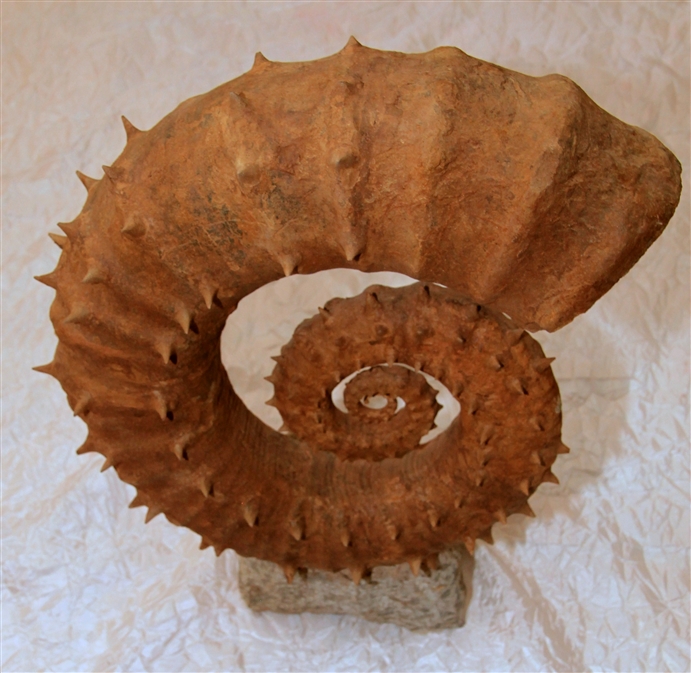 Le Maroc possède de vastes gisements de calcaire dévonien qui remontent à trois cent cinquante millions d'années. Les ammonites trouvées aujourd'hui au Maroc prospéraient autrefois dans une mer chaude et peu profonde qui couvrait ce qui est maintenant le désert du Sahara. Au fur et à mesure que les coquilles des créatures se sont accumulées sur le fond marin, elles ont été ensevelies par les sédiments et, au fil des âges, transformées en pierre par des processus physiques et chimiques.