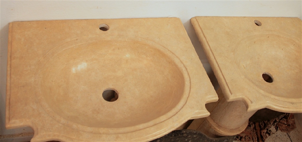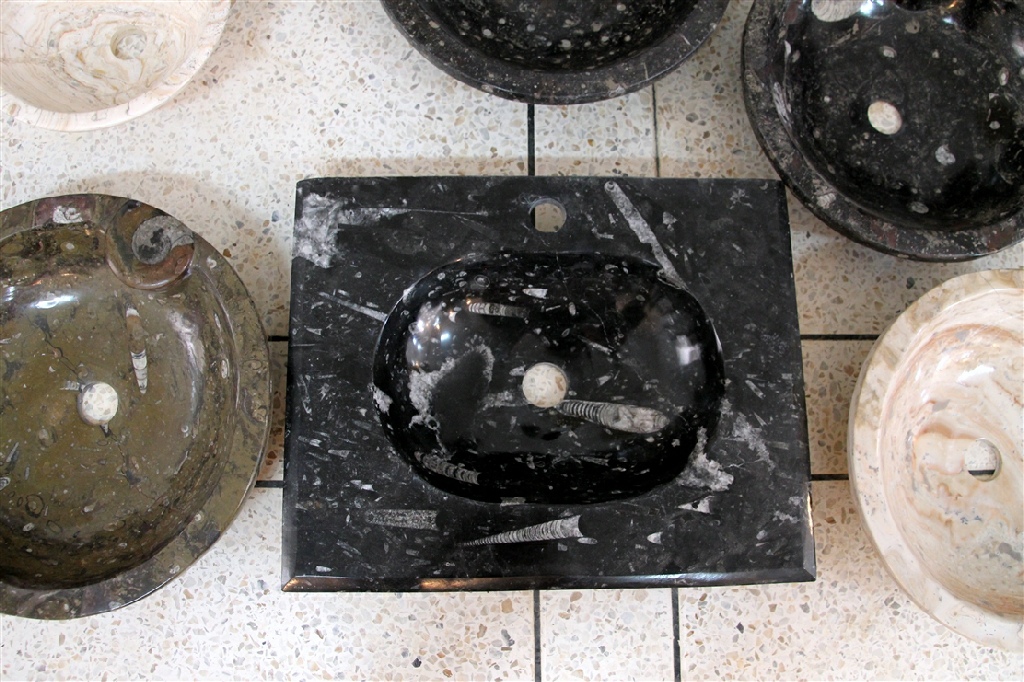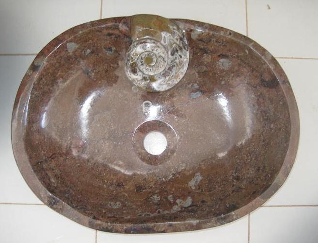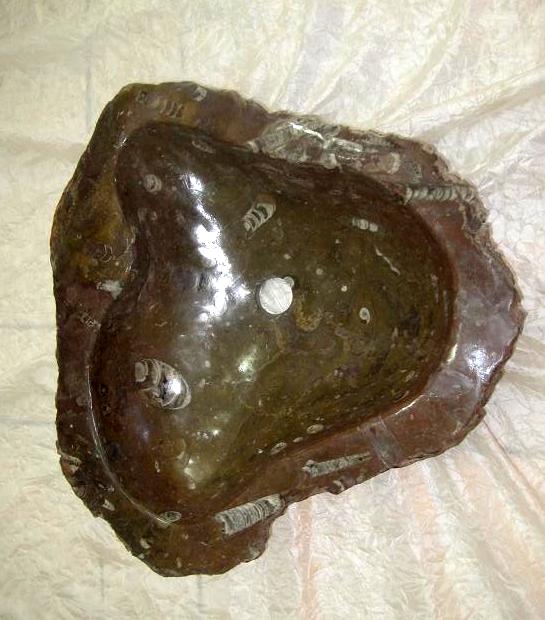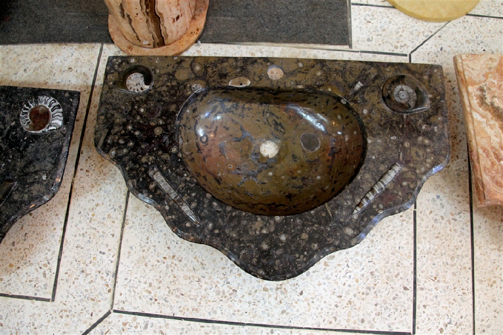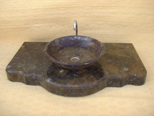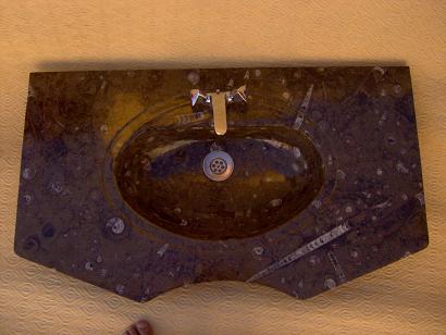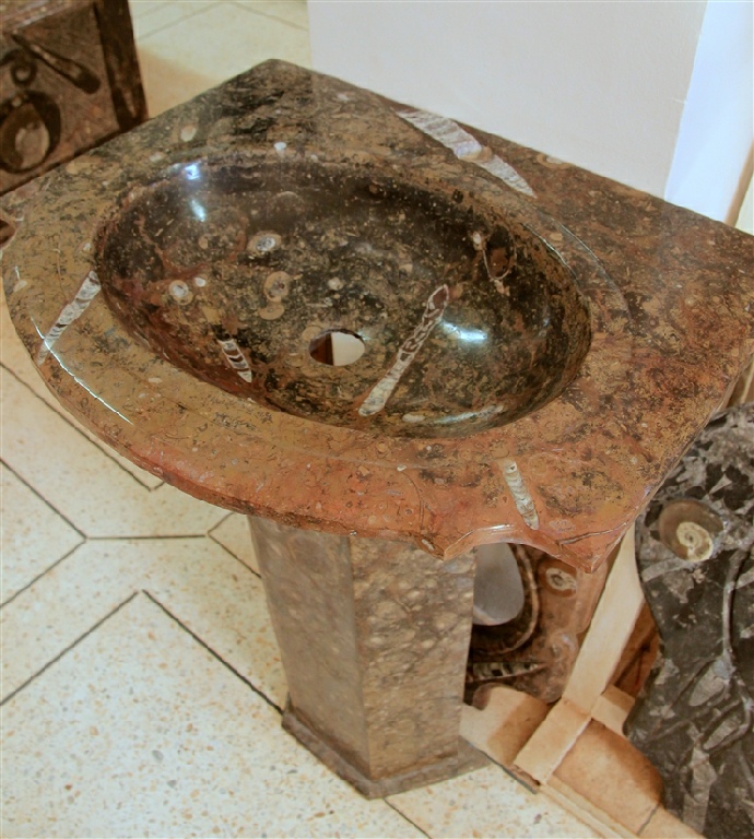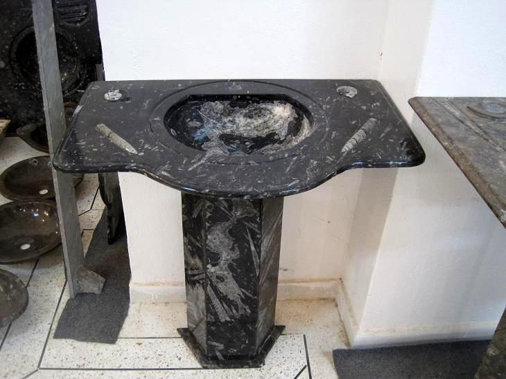 Le travail de la nature peut être vu dans ces merveilleux éviers en pierre. Les ammonites et orthocères fossiles vieux de 345 millions d'années dans chaque évier créent une beauté naturelle époustouflante qui ajoutera à votre salle de bain. Il s'agit d'une trouvaille « unique en son genre » qui rehaussera la décoration de votre maison.